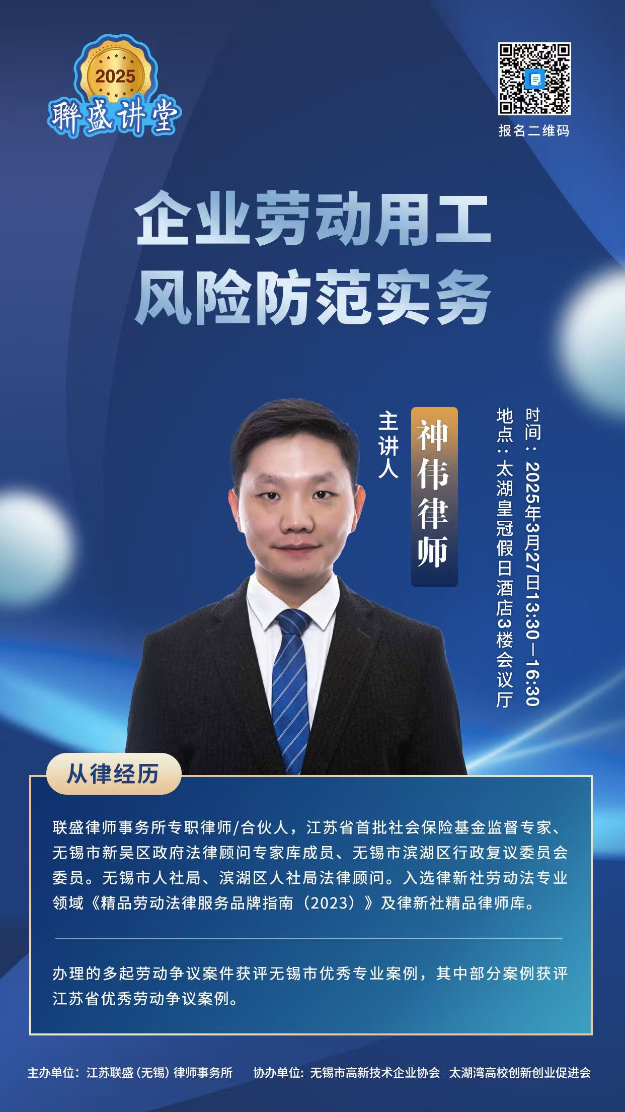 联盛讲堂 | 第2期:企业劳动用工风险防范实务培训